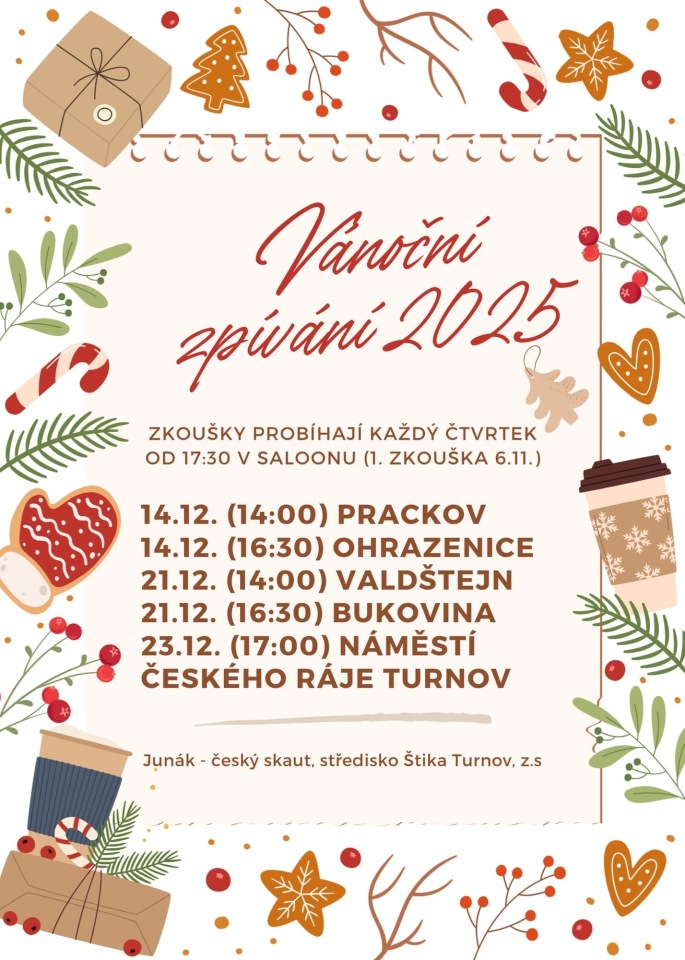 Akce střediska Skautský sboreček 30 září, 2025 S podzimem a (pomalu se) blížícím adventem začíná také nácvik našeho skautského sborečku. Vše podstatné najdete na plakátu Read More