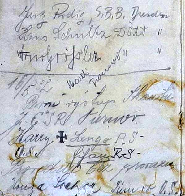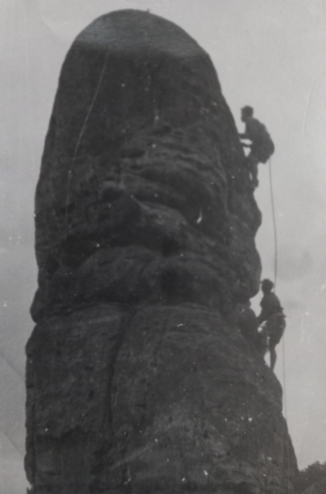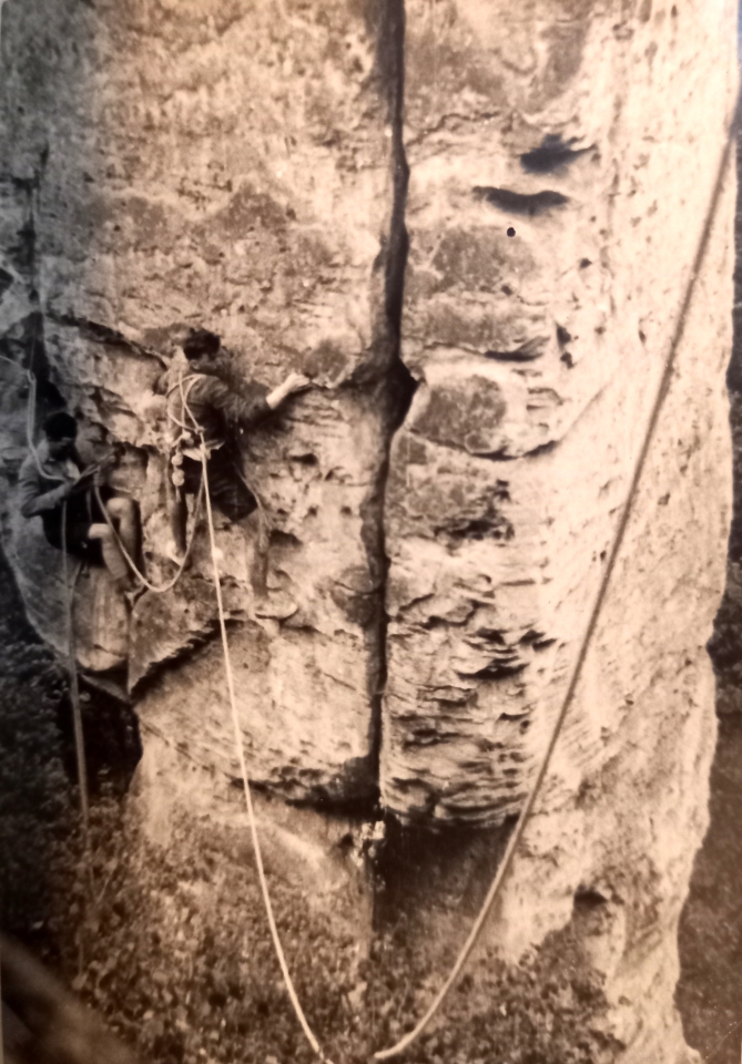 Pivní Skaut a skalní Skaut Delfín, 25 srpna, 202525 srpna, 2025 Lokální pivovar Rohozec nedávno představil piva, která mají být počátkem jeho dalších pivovarských novot. Nejslabší pivo v nabídce – sedmistupňový Skaláček – se změní na Skauta. Jak je uvedeno v článku o nových pivech s příběhem, tak (cit.) „právě Skaut má v Turnově velkou historii.“ Více si můžete přečíst na webu i v novinách Turnovsko v akci (č. 15 z 31. července). Pivní edice je myšlena též k výročí naší Chko, dále obsahuje názvy jako Věžák či zobrazuje pohled na hruboskalské skalní město. Nemluvě o tom, že na etiketách se objevuje útvar Čertova ruka a věž Maják. Můžeme tak navázat a připomenout, že v centrálním Skaláku se také tyčí skála Skaut, která se objevila v oblíbené letní komedii „Jak dostat tatínka do polepšovny“. Fimový Dračí zub. Povšimněte si stínu kamery. Druhá skála (resp. souskalí) obdobného jména stojí v Prachově. K této lokalitě – v několika různých zápisech od Harryho – mj. praví turnovská horolezecká kronika: „Po skončení vojny začali lézti skauti (OS-33 a Roveři z oddílu Turnov) na skály při svých hrách a výletech. Tak byl zlezen hrad Skaut (Krkavčí skály) v Prach. skalách.“ V roverské kronice je uvedeno v textu k historii 33. klubu oldskautů, že v roce 1932 „o svatodušních svátcích konaly se župní závody v Jičíně, kde OS soudcovali. Na zpáteční cestě přes Prachovské skály byl proveden první výstup bez lana na Skautský hrad.“ K uvedenému můžeme doplnit, že při dvoudenní vycházce vystoupili ještě na Orla, Mnicha, Bella Vistu, a Krkavčí skály byly od té doby zvané Hrad Skaut. Jeden z lezců – Fifan – byl tehdy ještě malý a sporý, ale nelekl se ani širokého komínu, ve kterém se „propadl“; již tenkrát bylo vidět, že v něm vězí budoucí nadějný horolezec. Časem se jména skal ustálila a dnešní skautsky pojmenované skály jsou trošku stranou. Zápis o výstupu vč. značky + u Lenga (doplněna nejpravd. v r. 1935). Když už jsme u těch skal – kdysi mi povídal Slim, že jeho první skála byla někdy po válce ta s názvem Těžítko, kam je vytáhl Chroust. Zde je bohužel k mání jen záznam výstupu člena družiny Ostřížů (viz obr.), i když skautská jména se tu porůznu jindy objevují (Kujan, Lukeš…). Oddílový výlet za vedení části Ostřížů vč. uvedeného br. Novotného se ale uskutečnil 22. 4. 1946, takže s datací je to někdy ošemetné. Slim byl tehdy u Ostřížů. Protože nedisponujeme snímkem skautů na skále Skaut, sáhli jsme do archívu a přinášíme jiný obrázek z fotoalba Zd. Pokorného – Budhy. Jedná se o výstup na Taktovku v r. 1939 (mj. letos to je 100 let od dřívějšího prvovýstupu). Foto má z rubu poznámku: Vycházka 11. č(e)rvna 1939 Fifan Chroust. Na stránce fotoalba je k šesti fotečkám z tohoto výstupu přifařena další fotka s podobným popisem (Vycházka 11. č(e)rvna 1939 Na vyhlídce nad skalním městem). Takže je možné, že při výletu došlo později i na sledování výstupu. Potvrzuje to zápis z kroniky roverů (starších junáků), kdy při návratu z Kosti „před 6tou jsme již opět byli ve Skalním městě a obdivovali 2 lezce, pokoušející se o výstup na Taktovku“. Budha byl jedním z 21 účastníků tohoto výletu. V kronice starších junáků (33. odd. SJ) je k vycházce uvedeno datum 4. června 1939, takže razítka s datem na rubu fotek by mohla značit např. vyhotovení. Nebo to bylo jinak… Až bude po prázdninách a po dovolených a davy turistů prořídnou, můžete zde zastavit a v klidu se pokochat. Třeba pod skalním Skautem, s tím pivním Skautem… Z nějakého jiného výletu přes Hamštejn na Kozákov (konec 30. let). A že jim už tehdy chutnalo! Fotka od Budhy, ze stejné stránky a sady (ale možná nesouvisející s výletem na Kozákov). Viktor Tomek (Toma) Byli jsme tam 2025historieSkaut